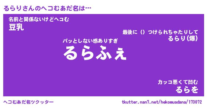 | 意味不明あだ名 | 『ペロリンるらり』『るらりフォーエバー』 |