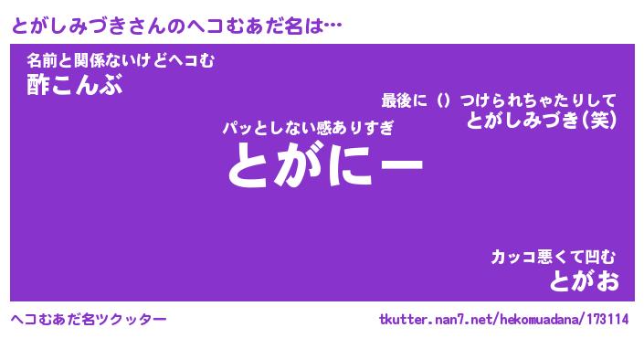 | 胡散臭い通販商品みたいなあだ名 | 『必ず成功するブレスレット…その名も「とがしみづき」』 |