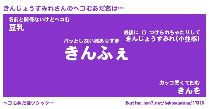 | 2回繰り返すあだ名 | 『きんきん』『ききんん』『にぎにぎ』 |