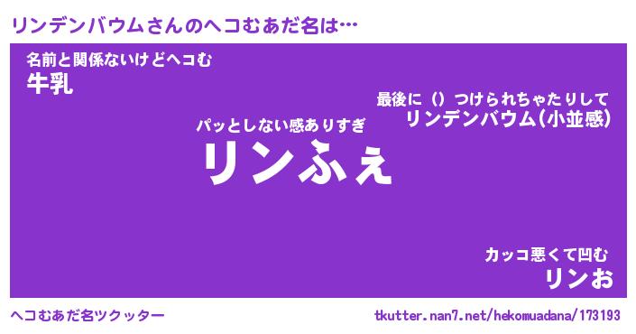 | 意味不明あだ名 | 『ペロリンリンデンバウム』 |