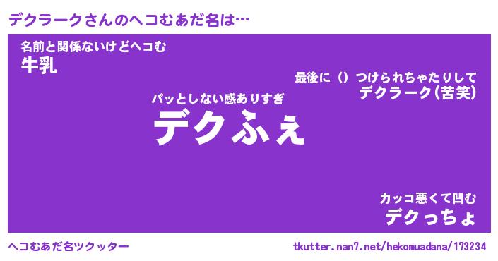 | ファンタジー風あだ名 | 『デクフェル』『エターナルデクラークー』 |