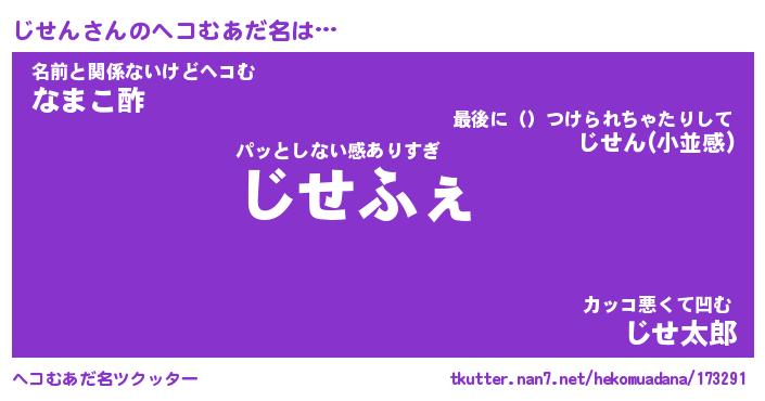 | ヒーロー風カッコイイあだ名 | 『スーパージセン』『ウルトラじせんマン』 |