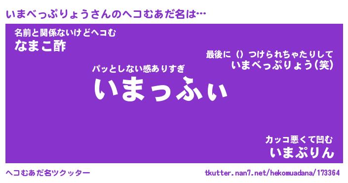 | ポケモン風あだ名 | 『イマチュウ』『イマベダネ』 |
