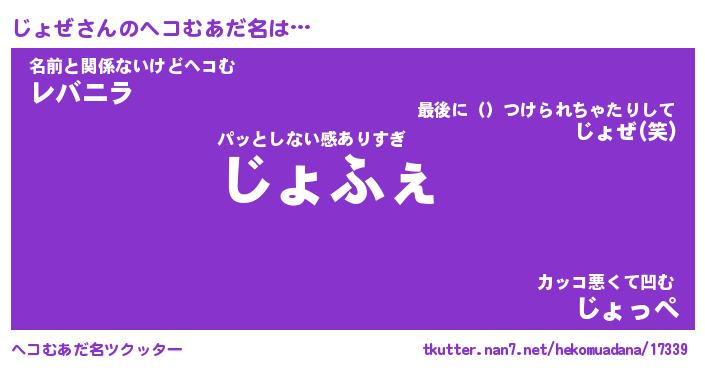 | 意味不明あだ名 | 『ペロリンじょぜ』『じょぜフォーエバー』 |