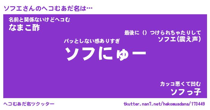 | ファンタジー風あだ名 | 『ソフフェル』『エターナルソフエー』 |