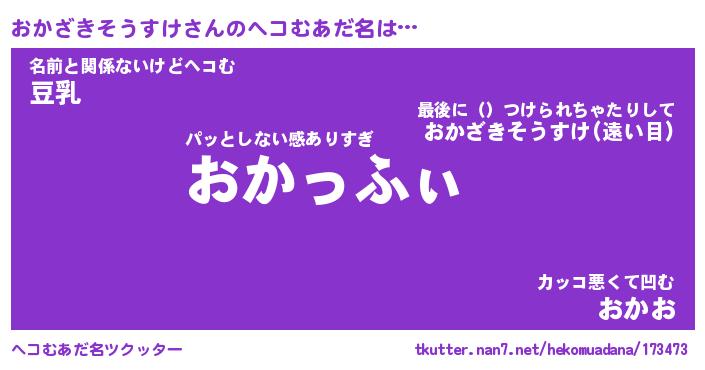 | 肩書あだ名 | 『おかざきそうすけ御曹司』 |