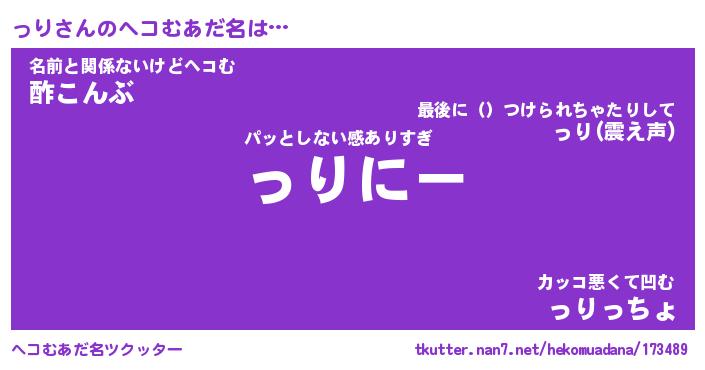 | ポケモン風あだ名 | 『ッリチュウ』『ッリダネ』『ヒッリ』 |