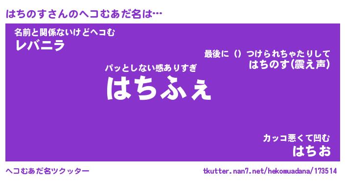 | 意味不明あだ名 | 『ペロリンはちのす』『永久保存はちのす』 |