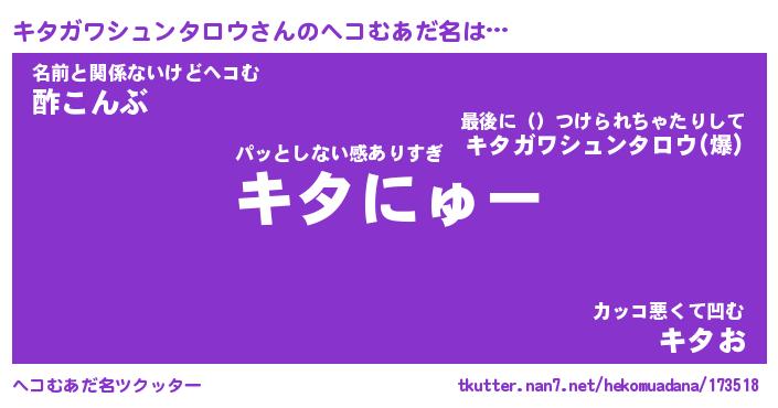 | 恥ずかしいあだ名 | 『プリティーキタガワシュンタロウ』 |