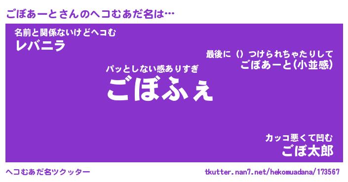 | 2回繰り返すあだ名 | 『ごぼごぼ』『ごごぼぼ』『がすがす』 |