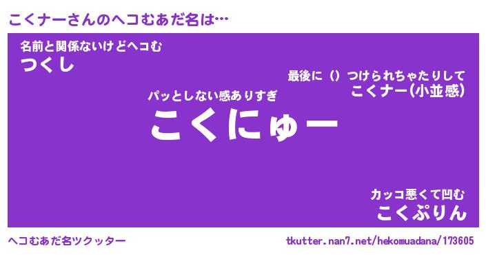 | 男性向けラノベタイトル風あだ名 | 『こくナーの憂鬱』 |