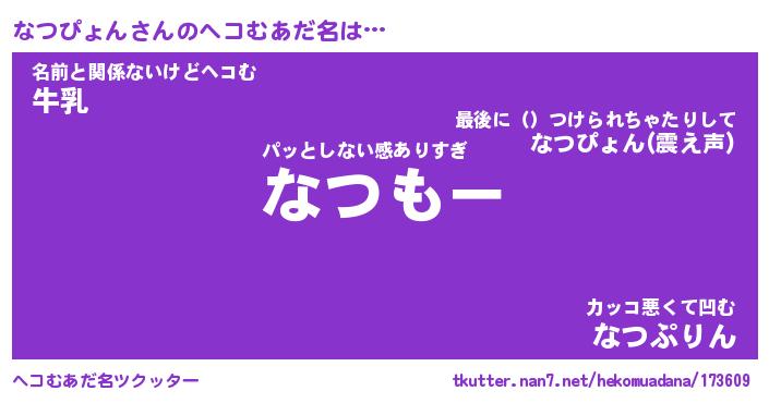| 2回繰り返すあだ名 | 『なつなつ』『ななつつ』『ぬめぬめ』 |
