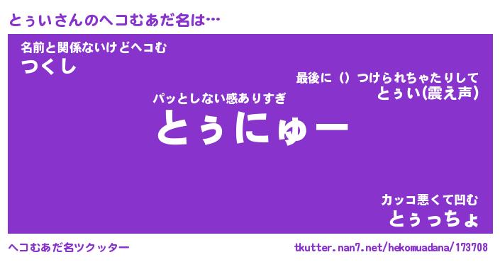 | 男性向けラノベタイトル風あだ名 | 『とぅいの憂鬱』 |