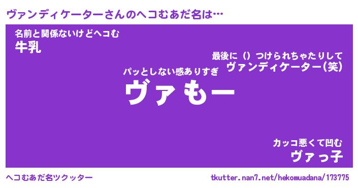 | 男性向けラノベタイトル風あだ名 | 『ヴァンディケーターの憂鬱』 |