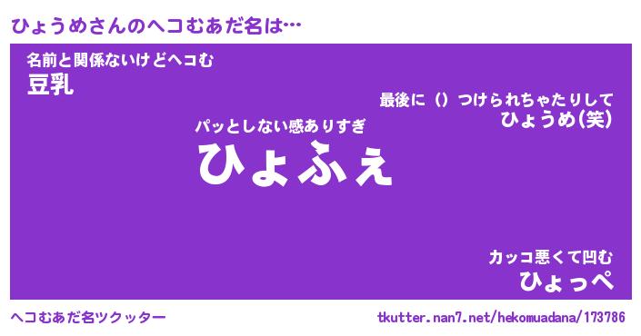 | 意味不明あだ名 | 『ペロリンひょうめ』『永久保存ひょうめ』 |