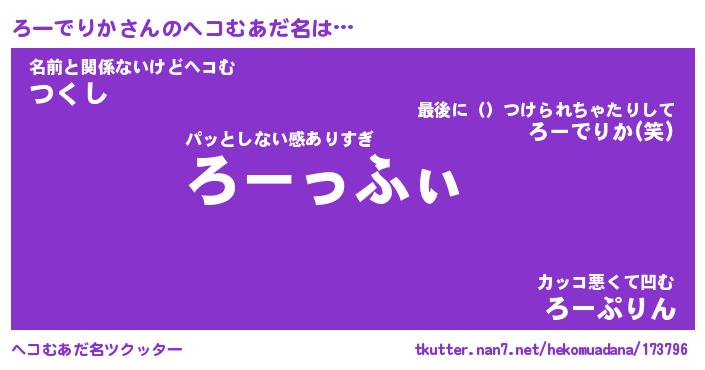 | 欧米人風あだ名 | 『マイケルろーでりか』 |