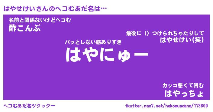 | ポケモン風あだ名 | 『ハヤチュウ』『ハヤセダネ』 |