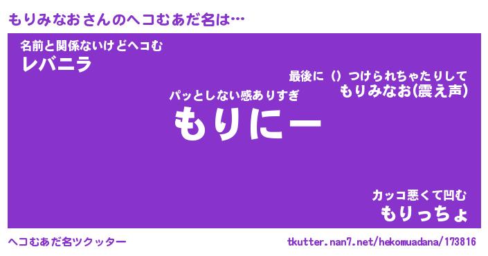 | 意味不明あだ名 | 『ペロリンもりみなお』 |