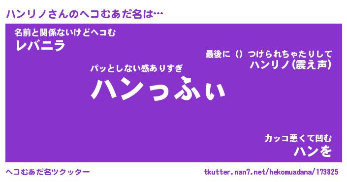 | ポケモン風あだ名 | 『ハンチュウ』『ハンリダネ』 |