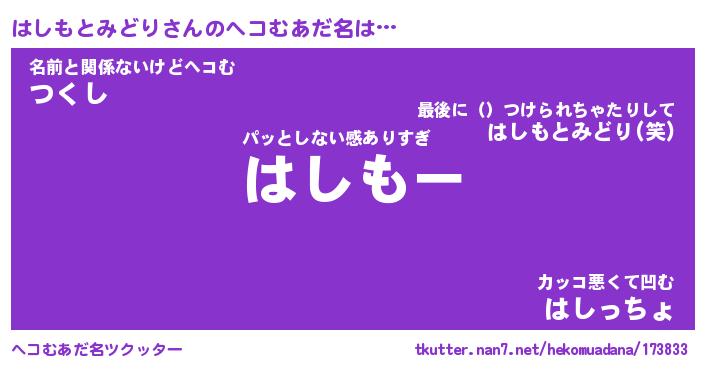 | ポケモン風あだ名 | 『ハシチュウ』『ハシモダネ』 |