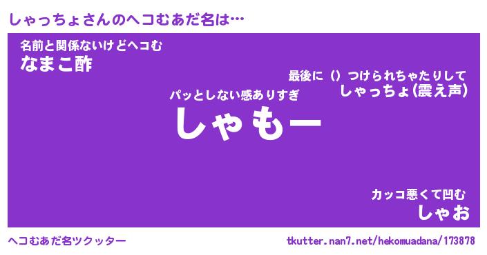 | ピコ太郎風あだ名 | 『シコ六郎』『ピシ四郎』『シャ太郎』 |