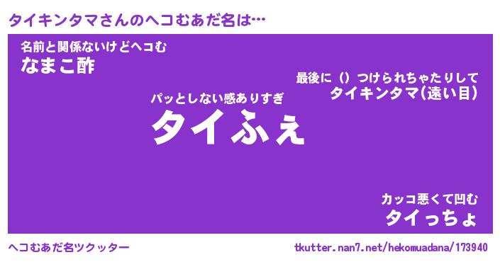 | ヒーロー風カッコイイあだ名 | 『スーパータイキンタマ』『黄金騎士タイ』 |