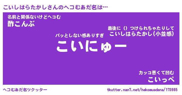 | 意味不明あだ名 | 『ペロリンこいしはらたかし』 |