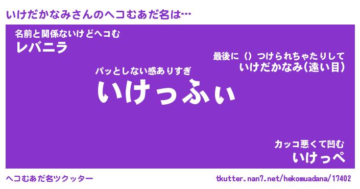 | 胡散臭い通販商品みたいなあだ名 | 『必ず成功する霊験あらたかなお札…その名も「いけだかなみ」』 |
