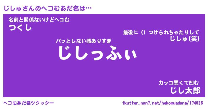 | ポケモン風あだ名 | 『ジシチュウ』『ジシュダネ』 |