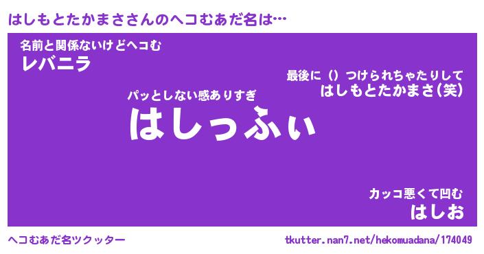 | 肩書あだ名 | 『はしもとたかまさ御曹司』 |