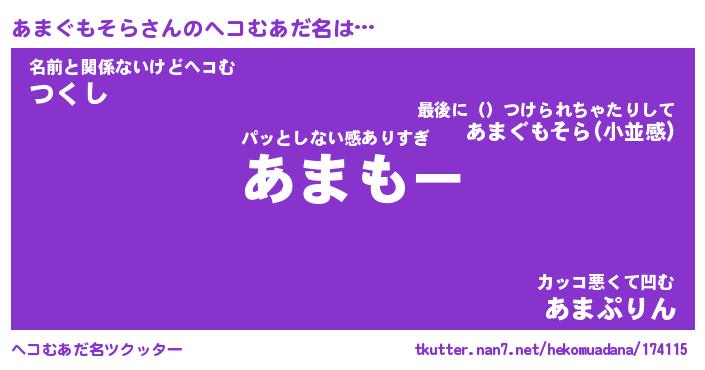 | ヒーロー風カッコイイあだ名 | 『スーパーアマグモソラ』『炎刃騎士アマ』 |
