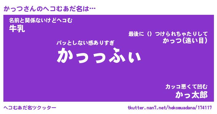 | 胡散臭い通販商品みたいなあだ名 | 『モテモテ間違いなし霊験あらたかなお札…その名も「かっつ」』 |