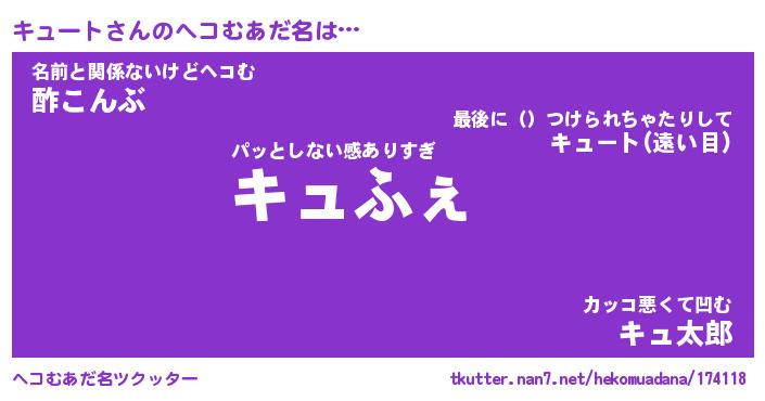 | ファンタジー風あだ名 | 『キュフェル』『エターナルキュートー』 |