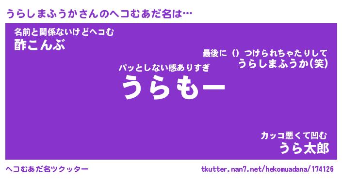 | 胡散臭い通販商品みたいなあだ名 | 『必ず成功する霊験あらたかなお札…その名も「うらしまふうか」』 |