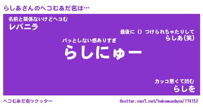 | ツイッター | らしあさんのツイッターID『katatsumuri_idle』 |