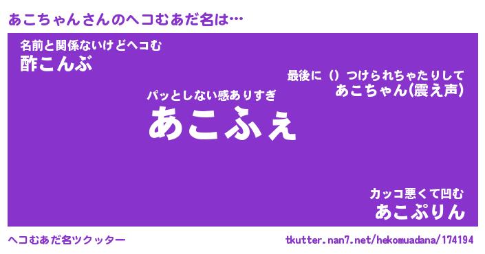 | 意味不明あだ名 | 『ペロリンあこちゃん』 |