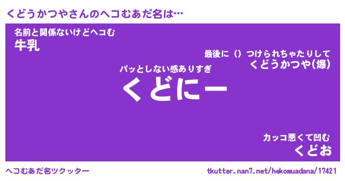 | 胡散臭い通販商品みたいなあだ名 | 『億万長者になれるブレスレット…その名も「くどうかつや」』 |