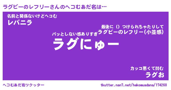 | ポケモン風あだ名 | 『ラグチュウ』『ラグビダネ』 |