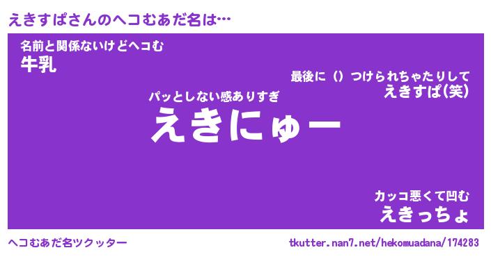| 男性向けラノベタイトル風あだ名 | 『えきすぱの憂鬱』 |