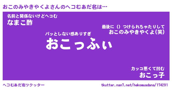 | 男性向けラノベタイトル風あだ名 | 『おこのみやきやくよの憂鬱』 |