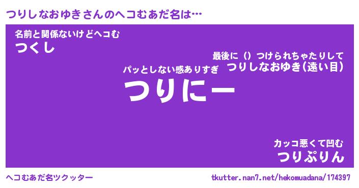 | 男性向けラノベタイトル風あだ名 | 『つりしなおゆきの憂鬱』 |