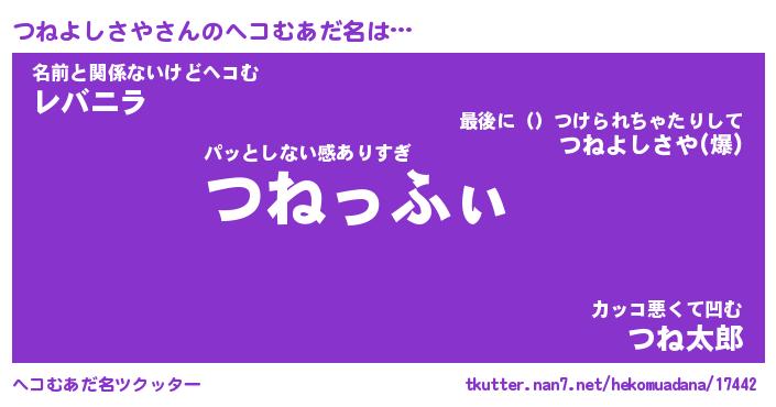 | ポケモン風あだ名 | 『ツネチュウ』『ツネヨダネ』 |