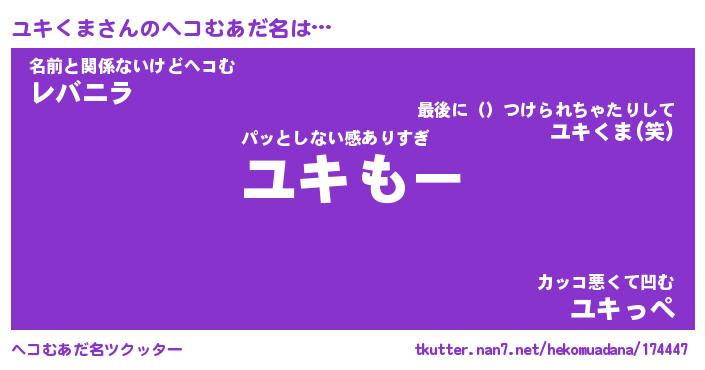 | ファンタジー風あだ名 | 『ユキフェル』『エターナルユキクマー』 |