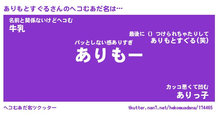 | 2回繰り返すあだ名 | 『ありあり』『あありり』『ぬらぬら』 |
