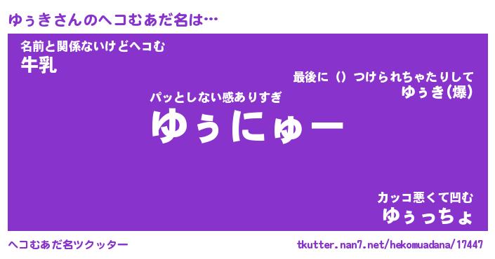 | ポケモン風あだ名 | 『ユゥチュウ』『ユゥキダネ』 |