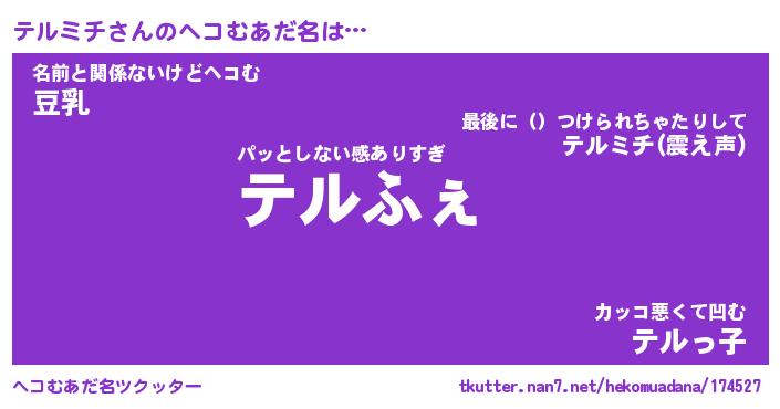 | 男性向けラノベタイトル風あだ名 | 『テルミチの憂鬱』 |
