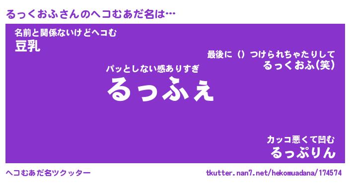 | 2回繰り返すあだ名 | 『るっるっ』『るるっっ』『うねうね』 |