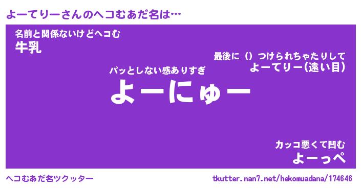 | 自動車の名前っぽいあだ名 | 『ヨーティマ』『ヨクア』『ヨント』 |