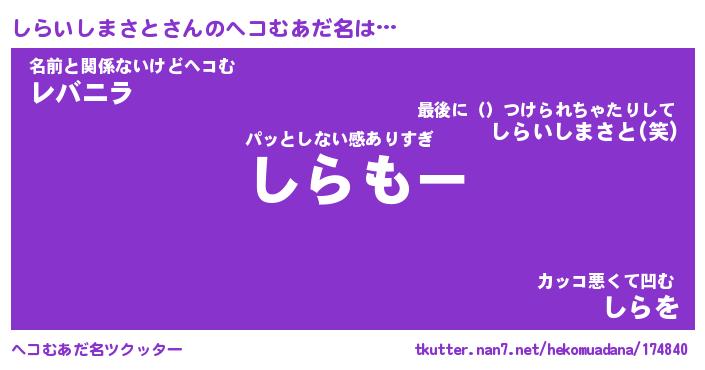 | 意味不明あだ名 | 『ペロリンしらいしまさと』 |