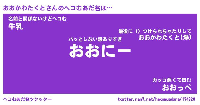 | 欧米人風あだ名 | 『マイケルおおかわたくと』 |